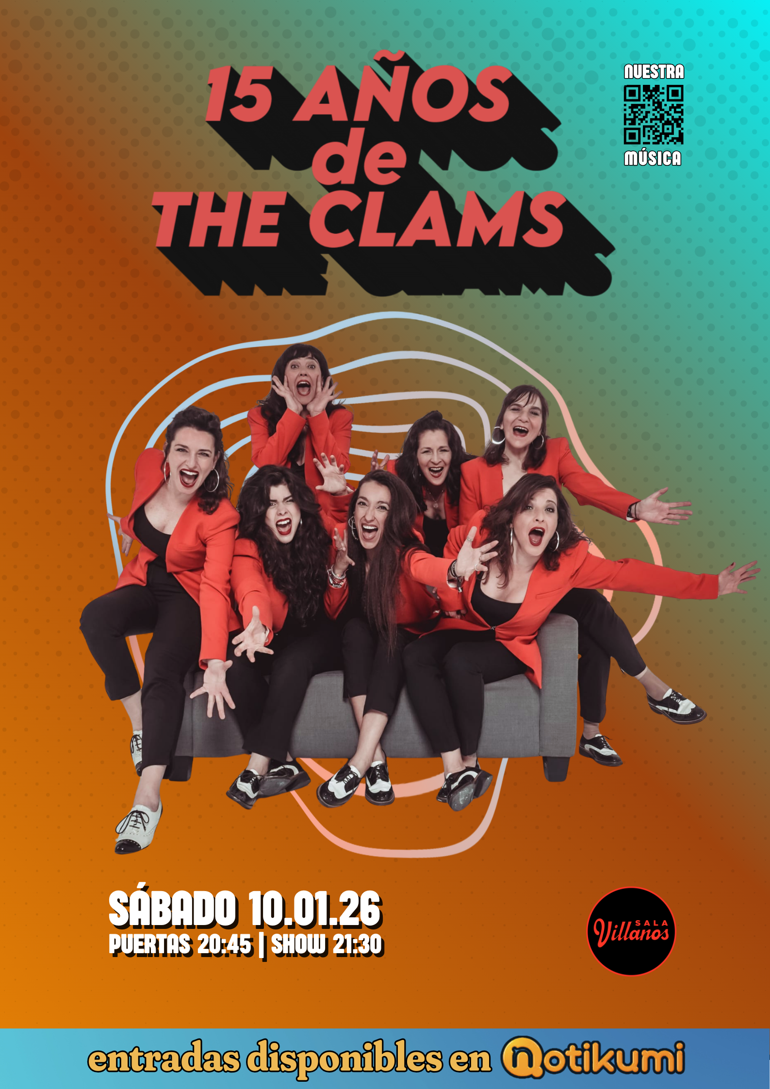 ¡THE CLAMS CUMPLE 15 AÑOS! CELÉBRALO CON NOSOTRAS EL 10 DE ENERO EN LA SALA VILLANOS